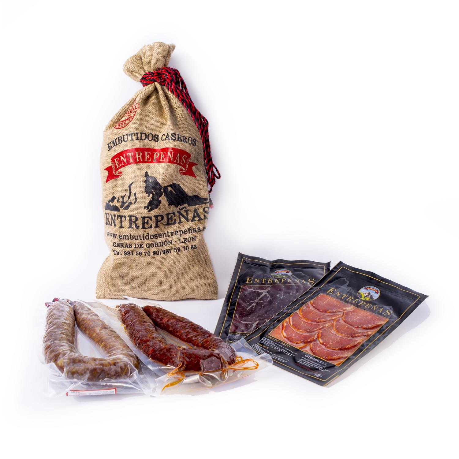 Contient :1 chorizo doux de León, 1 chorizo épicé (piquant) de León, 1 pot de chorizo à tartiner, 1 pot de chorizo épicé à tartiner, 1 morceau de Cecina de León (env. . 700g), 400g de fromage de vache à pâte dure Entrepeñas , 1 kg de lentilles , 1 chocolat au lait et aux amandes.